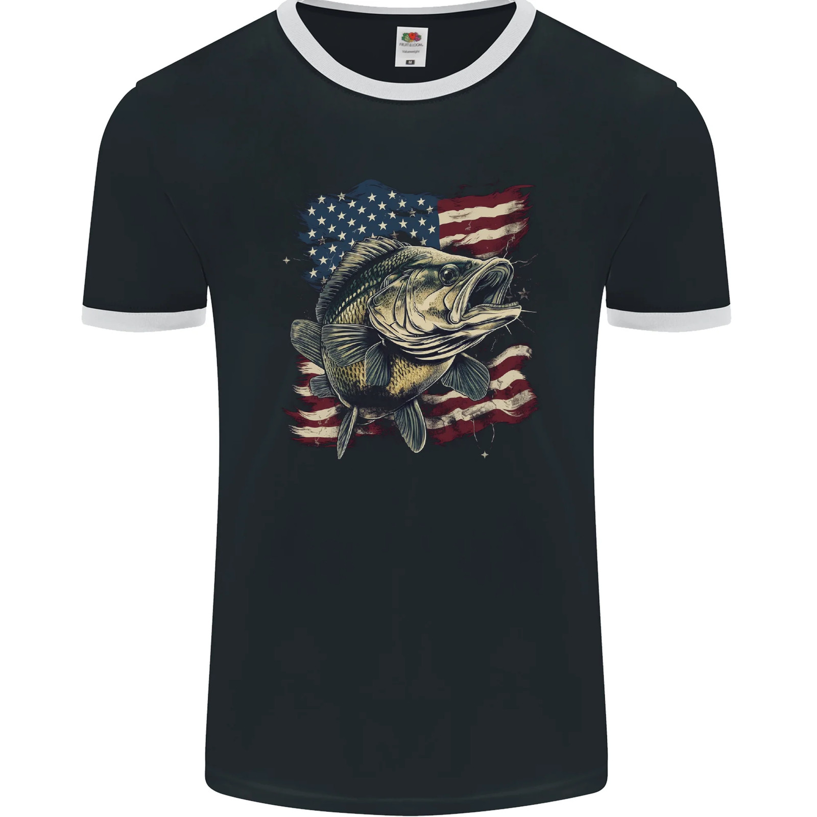 Un Cerf Américain Avec Drapeau USA T-Shirt De Pêche Pour Hommes 100% Coton
