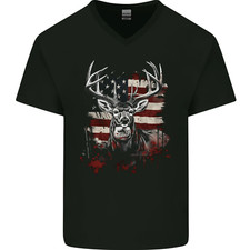 Un Cerf Américain Avec Drapeau USA T-Shirt En Coton À Col En V Pour Hommes