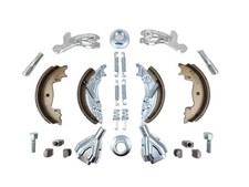 Frein Knott type 20-2425/1. Pour diamètre intérieur du tambour 200 mm. 4 mâchoires de frein avec 2 jeux de ressorts. Largeur mâchoire 50 mm. 2 œillets de suspension. 2 écrous à bride M24 x 1,5.