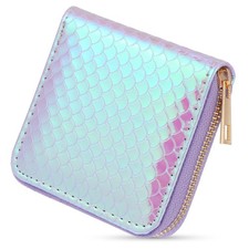 Portefeuille de mode en cuir PU, motif écailles de poisson, fermeture éclair,