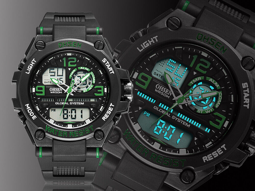 Montre-bracelet pour hommes à quartz numérique mode OHSEN bracelet en...