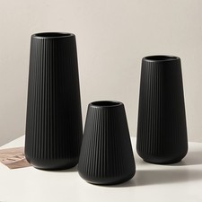 Lot de 3 Vases Décoratifs Noirs Striés Style Moderne Minimaliste Décoration